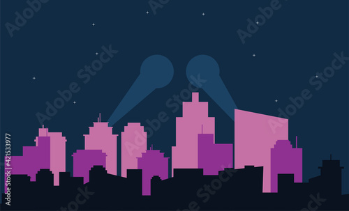 © _blueProspect, Fototapeta premium Flat city skyline with spotlights