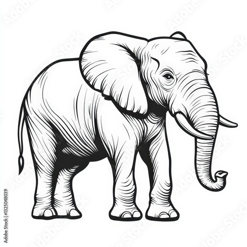 Fototapeta premium Flat Color Elephant Line Art in Minimalistic Style, Simple Doodle