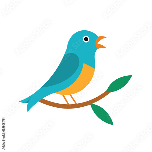 © MdFazar, Obraz premium Flat color style and minimalist of a bird chirping Vector illustration
