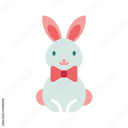 Obraz premium Flat color style and minimalist of a bunny with bow Vector illustration