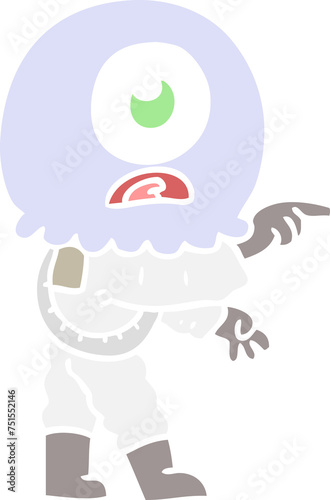 Fototapeta premium flat color style cartoon cyclops alien spaceman pointing