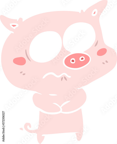 © lineartestpilot, Naklejka premium flat color style cartoon nervous pig