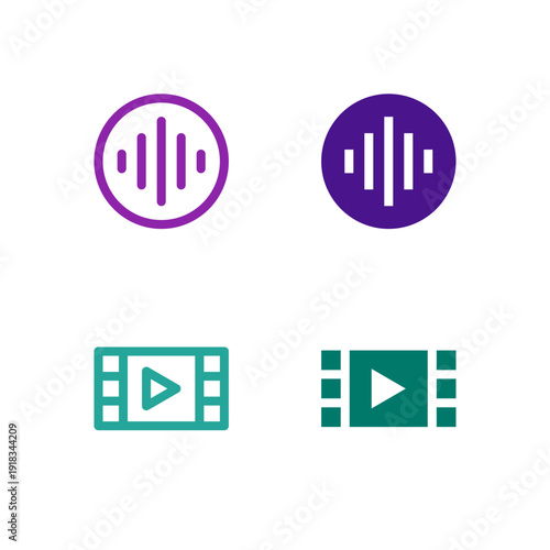Fototapeta premium Flat Colored Voice and Video Icon Set for Communication Interface