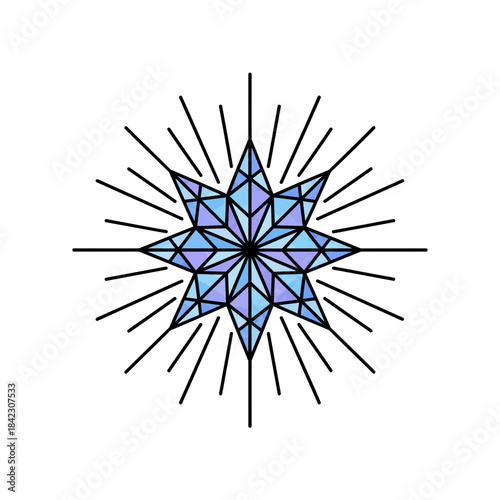 © Borizzz, Obraz premium Flat Crystal Snow Star Firework Vector with Bold Black Outline