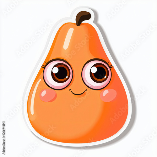 Fototapeta premium flat cutout vector sticker of a pear with big eyes and rosy cheeks, isolated on white background