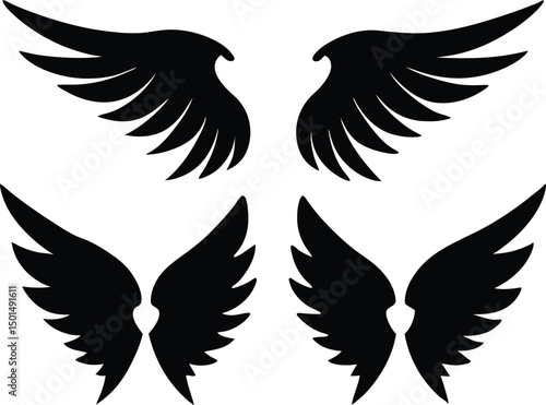 © Jabed, Fototapeta premium Flat design angel wings silhouette set vector design, New angel wings silhouette vector design illustration