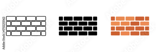 © Sahabat, Obraz premium Flat Design Brick Wall Icon Set with Outline, Solid, and Colorful Variations