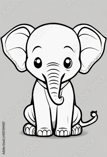 © Mohammed, Naklejka premium Flat Design Cartoon Side View of a Young African Elephant - Gray Vector Illustration with White Background | Safari Wildlife Art