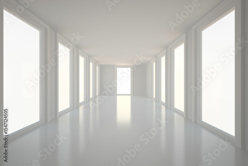 Obraz premium Flat design corridor is showcasing glossy white floor; windows are lining...