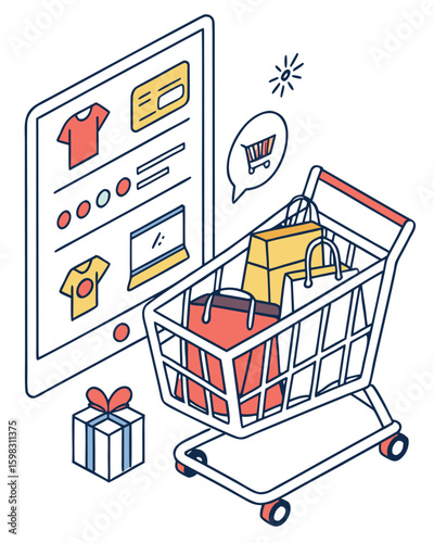 © Afzal, Fototapeta premium "Flat Design E-commerce Shopping Cart Illustration for Online Store and Digital Retail"