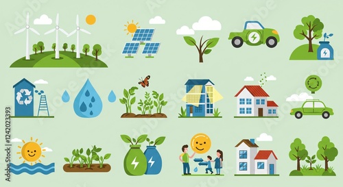 Obraz premium Flat design ecology concepts, such as renewable energy, recycling, and sustainability