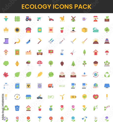 Fototapeta premium Flat Design Ecology Icons Pack Agriculture Renewable Energy and Environmental Conservation.