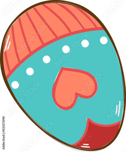 Naklejka premium Flat design egg featuring coral stripes, turquoise dots, heart motif and red accent transparent bg
