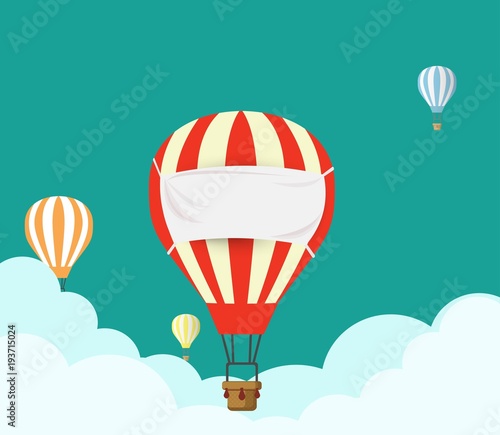 Obraz premium Flat design, Hot air balloon in the sky with cloud background