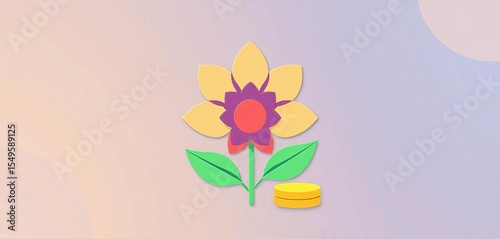 Naklejka premium Flat design icon of a flower sprouting from coins, symbolizing crowdfunding,...
