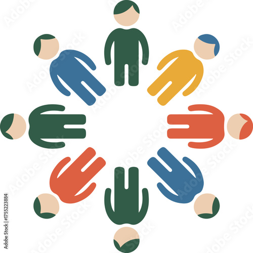 © SHAH NIPU, Obraz premium Flat design icon of diverse people standing in circle unified teamwork community concept vector