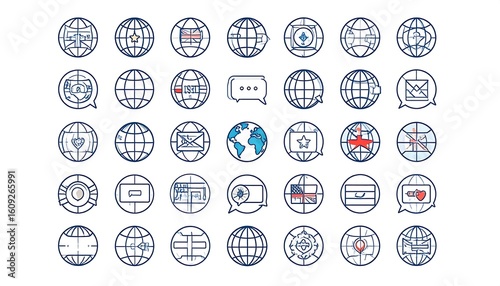 Fototapeta premium Flat design icons depicting global communication and international concepts