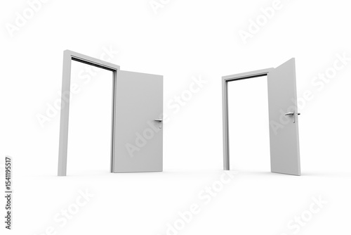© vectorfusionart, Fototapeta premium Flat design illustration is showing two open door frames with metallic handles on white surface