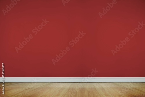 Obraz premium Flat design is presenting empty interior featuring red accent wall, white baseboard, wood floor