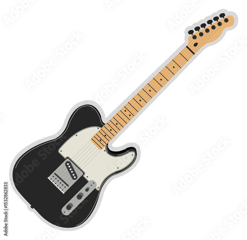 Fototapeta premium Flat design is showcasing black electric guitar with white pickguard on...