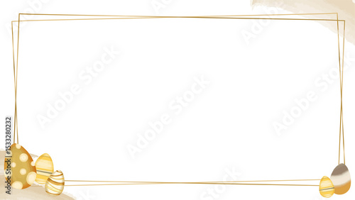 Fototapeta premium Flat design is showcasing golden frame, beige stains, Easter eggs on...