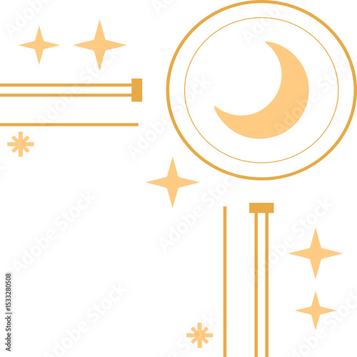 © vectorfusionart, Naklejka premium Flat design is showing crescent moon in rings or stars or bursts or square-end lines on transparent