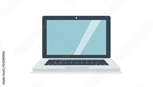 © Harsa creative, Fototapeta premium Flat Design Laptop Illustration With Light Grey Screen And Silver Keyboard