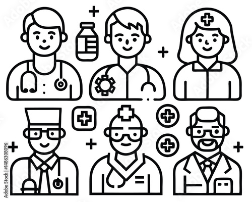 Naklejka premium Flat Design Medical and Healthcare Professional Vector Set – Doctors, Nurses,...