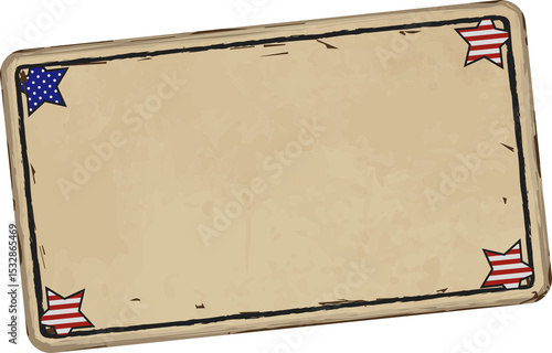 © vectorfusionart, Naklejka premium Flat design parchment sheet is tilting on transparent background with flag star corners, copy space