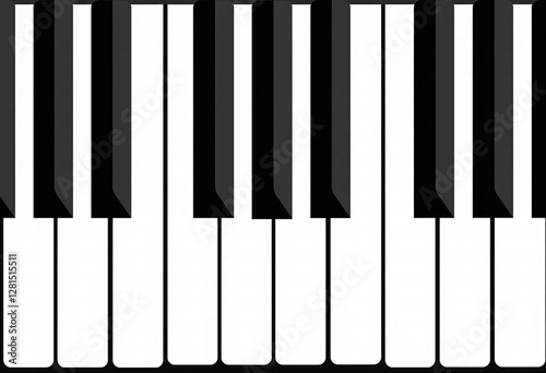 Naklejka premium Flat Design Piano Keyboard: A Minimalist 2D Vector Art Piece Featuring Clean Lines, Simple Shapes, and a Plain, Uncluttered Look