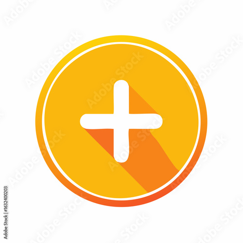 © Oleg, Fototapeta premium Flat design plus icon in a yellow circle with a long shadow vector illustration