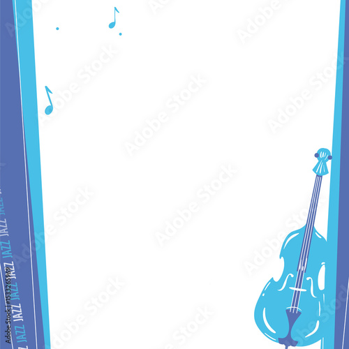 Obraz premium Flat design poster is showing upright bass, jazz banners, notes, transparent background, copy space