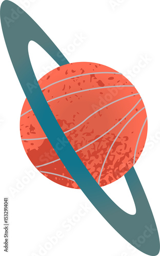 Naklejka premium Flat design red-orange orb with gray bands is floating on transparent backdrop with teal-blue ring