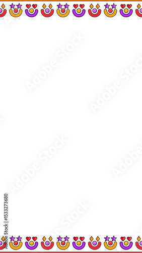 © vectorfusionart, Naklejka premium Flat design repeating border showing multicolor diamonds hearts arches stars on transparent canvas