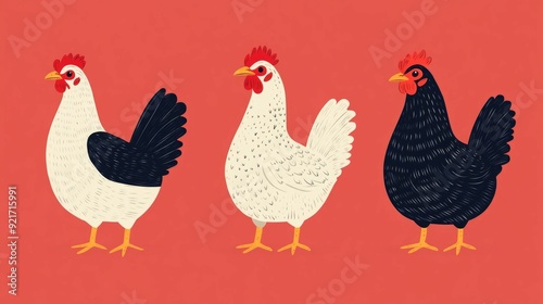 Fototapeta premium Flat design showcasing organic and sustainable poultry farming practices The image highlights the ethical treatment of animals harmony with the environment and the production of healthy