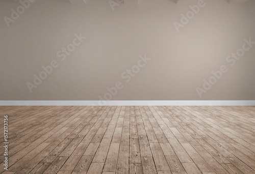Fototapeta premium Flat design showing empty interior with hardwood floor, beige wall, baseboard trim, exposed beams