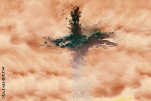 Obraz premium Flat design showing vertical cloud plume rising from warm-toned cloud sea...