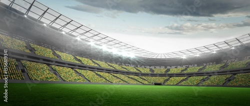 Obraz premium Flat design stadium interior showing grass pitch with yellow green seats,...