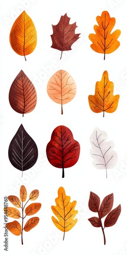 Obraz premium Flat design vector autumn leaves icon set simple shapes and solid colors orange yellow and brown tones modern and clean aesthetic