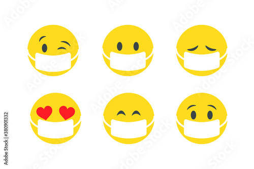 © Oleg_Yakovlev, Fototapeta premium Flat Design Vector Emoji Set in protective masks against infection. For Social Network Isolated on White Background