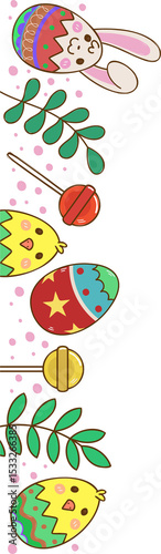 Naklejka premium Flat design vertical Easter border is showing bunny egg, chicks, sprigs on transparent background