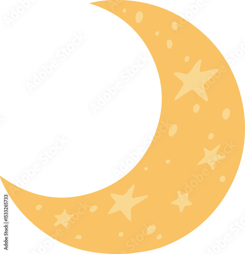 Obraz premium Flat design yellow crescent moon is floating on transparent backdrop with pale stars and oval spots