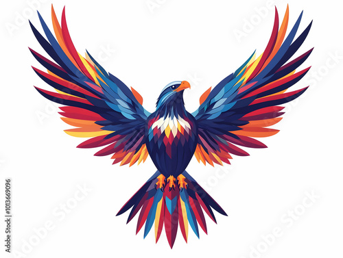 © HaJung, Fototapeta premium Flat Eagle Emblem with Folded American Flag - Proud to Serve Patriotic Vector Design Celebrating Veterans