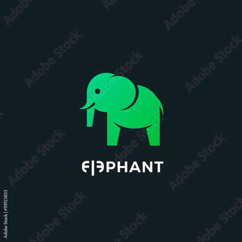 Obraz premium Flat elephant logo. Vector elephant logo. Elephant icon. Flat elephant icon. Flat vector elephant illustration. Green elephant logo. Ecology and nature logo. Green logo. Nature logo. Green icon