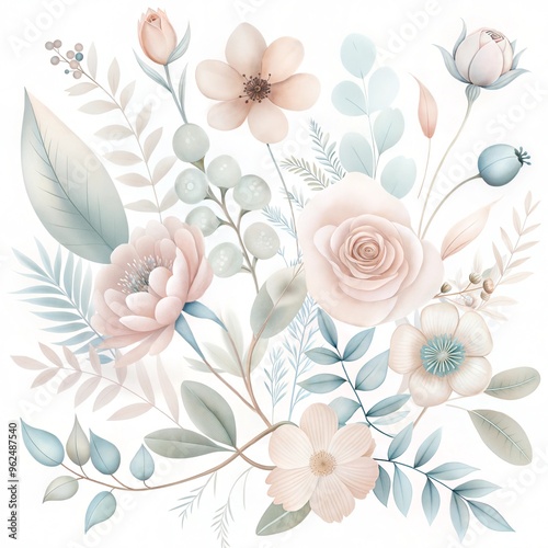 © Anisa283, Fototapeta premium Flat floral and botanicals decorative pattern design
