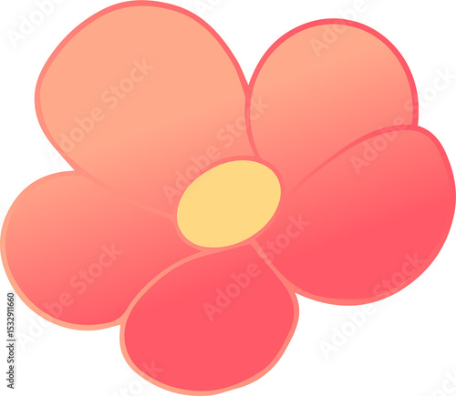 © vectorfusionart, Obraz premium Flat flower is showing coral-peach gradient petals circling pale yellow center, transparent bg
