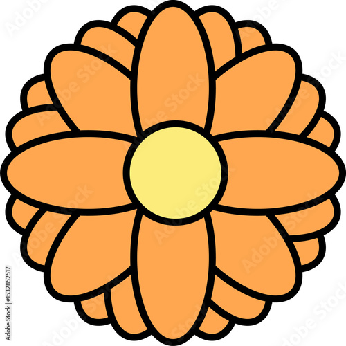 Obraz premium flat flower is showing layered orange petals and yellow disc on transparent...