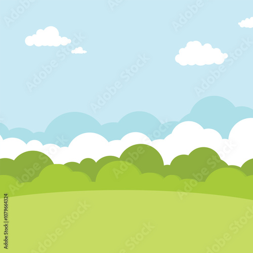 © Accountanz, Fototapeta premium Flat garden landscape background. Summer landscape with green hill on background. Green field vector illustration