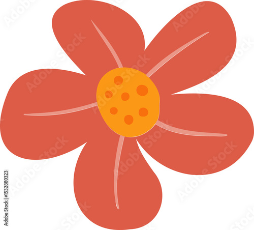 © vectorfusionart, Naklejka premium Flat graphic is showing coral-red petals with yellow orange-dotted center on transparent background
