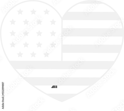 Fototapeta premium Flat graphic is showing US flag heart icon with stars, stripes, transparent background, copy space